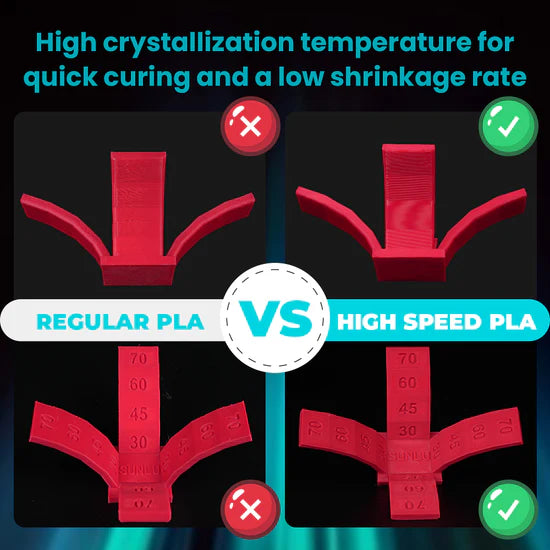 [Heat dissipation performance] The performance of Highspeed PLA increased by 180%, with faster cooling under the same conditions, and fast printing without piling up materials.